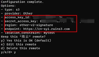 Other - access_key_id / secret_access_key:填入雨云提供的密钥